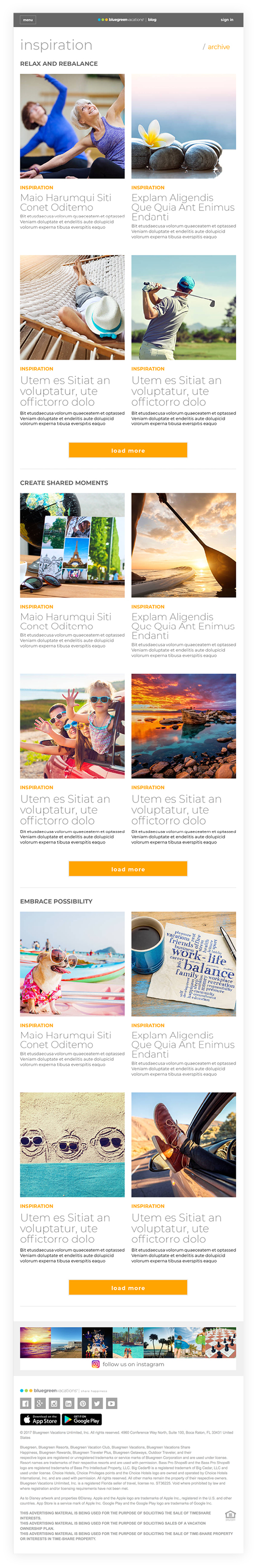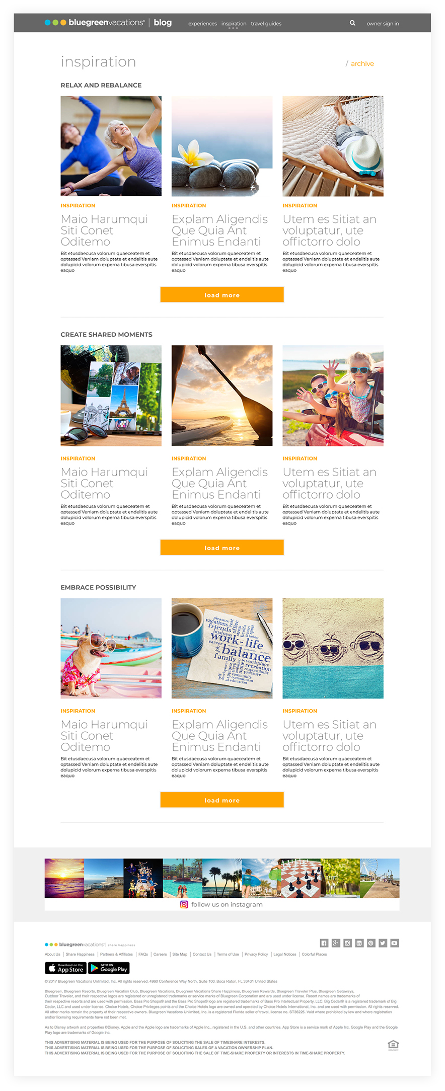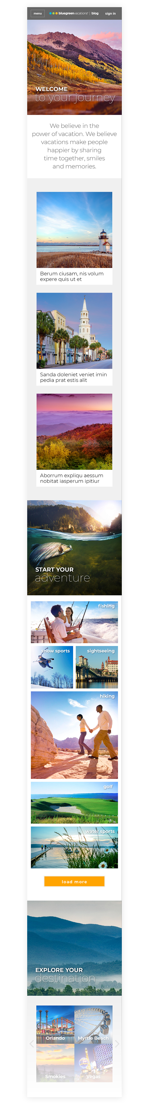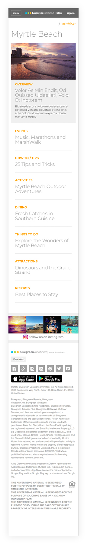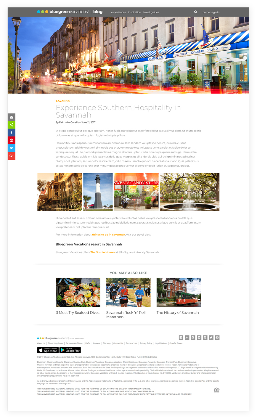 The Bluegreen Vacations Travel Blog was designed to deliver keyword-rich story content that would appeal to potential customers. The site features timely stories with rich photography and a layout that complements multiple viewports and browsing devices. The project involved coordinating with multiple areas including marketing, editorial, programming, and sales to achieve the desired effect.