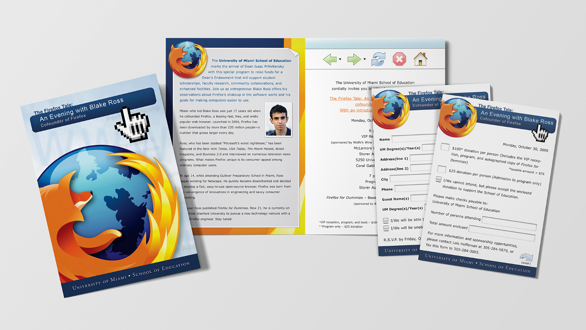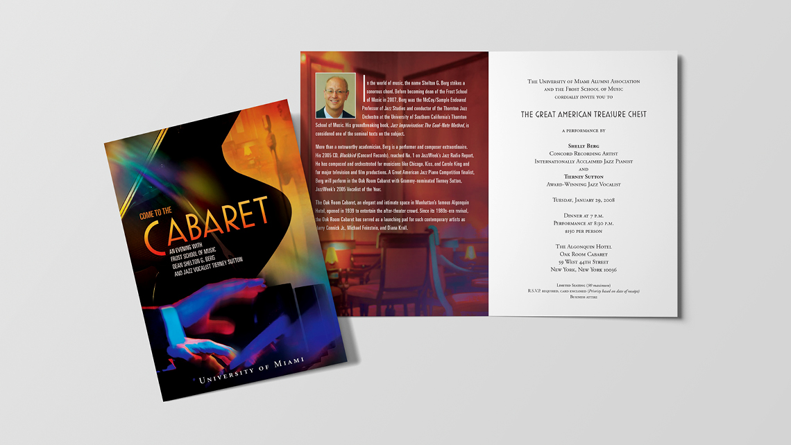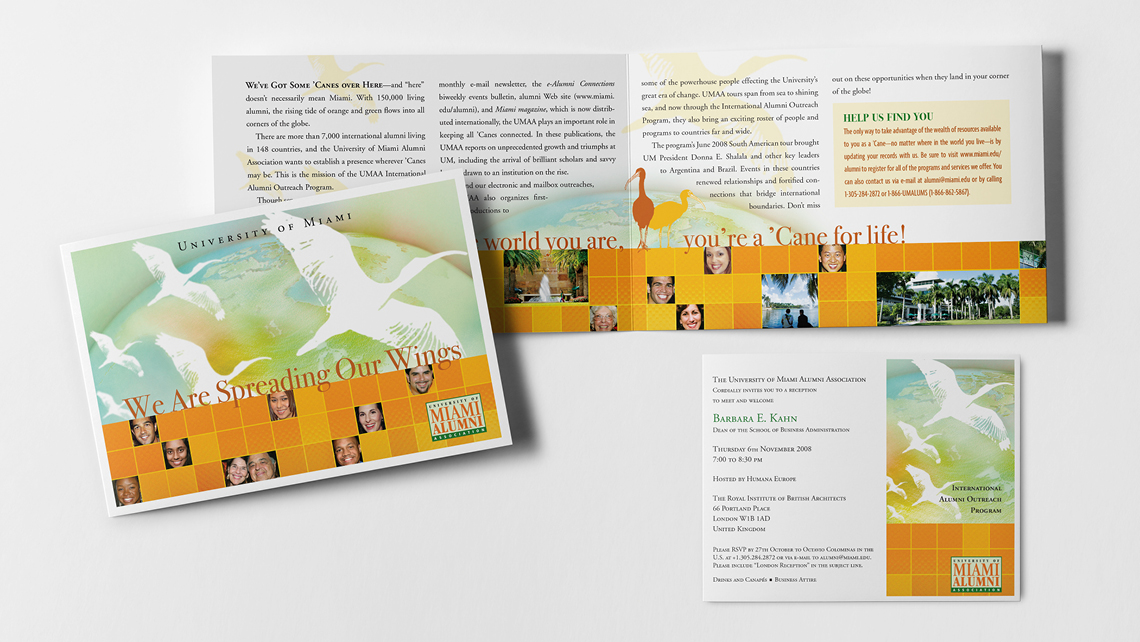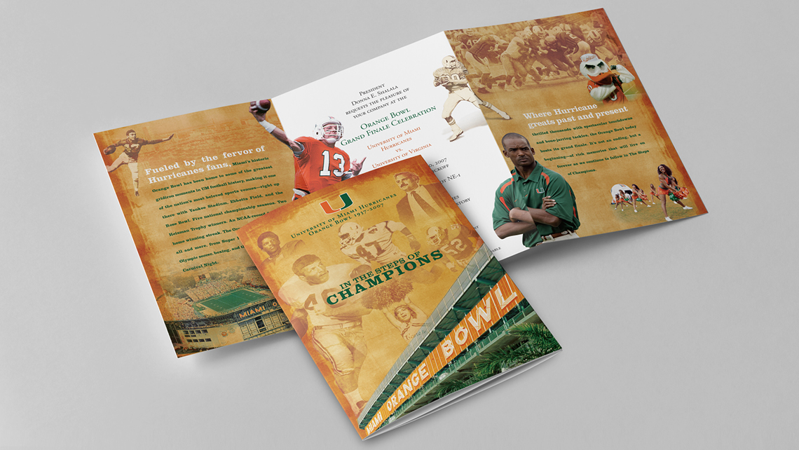 As a full-time art drector at the University of Miami, I had the opportunity to work on a number of special event print invitations including work for the Miami Hurricanes football team, the Office of the President, the Alumni Association, and various colleges and schools.